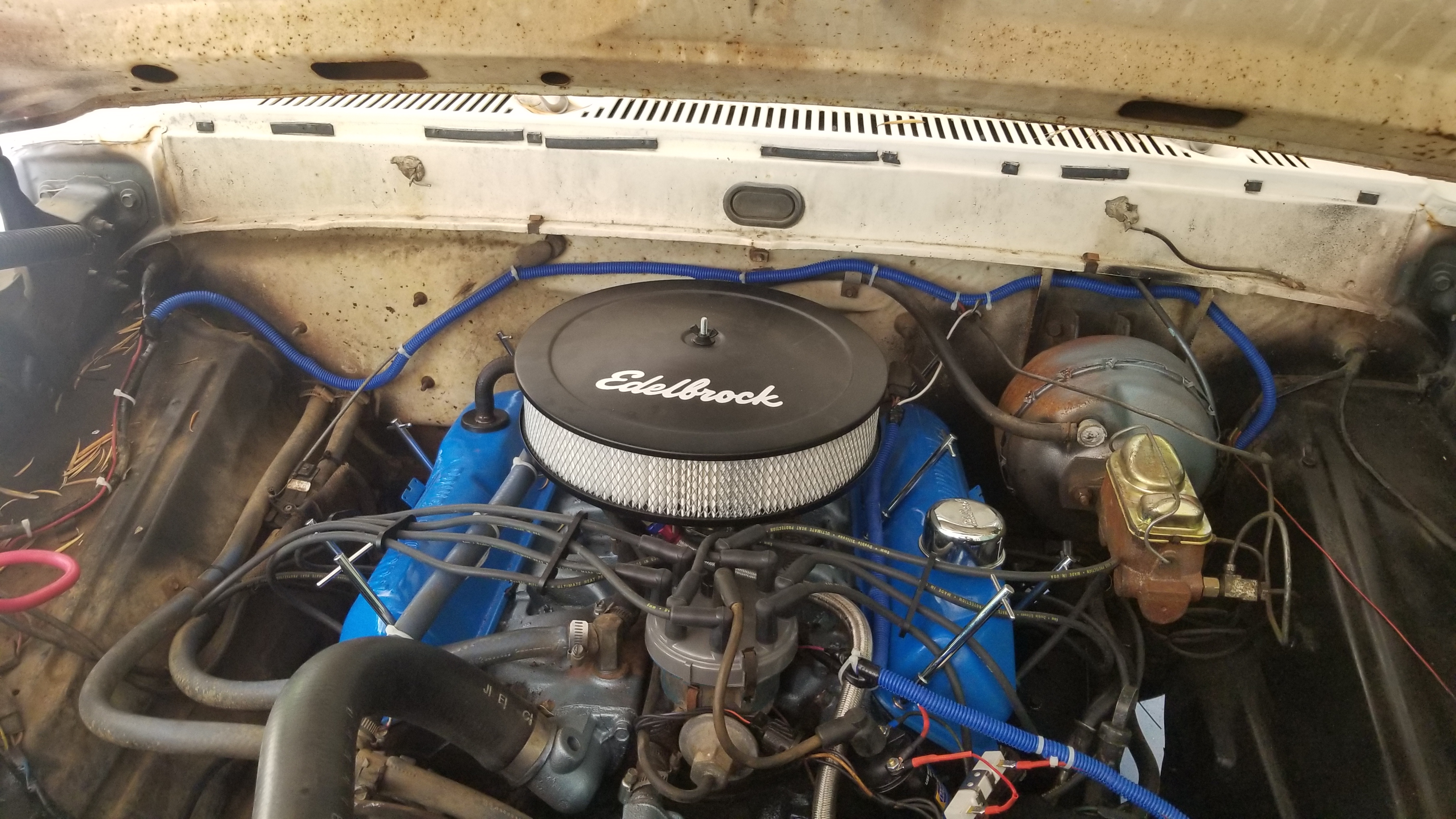 Melton has spent some time fixing up 'The Beast'. The F100 360 2 barrel engine needed a tune-up and a new card. Melton also added electronic ignition, a new fuel pump, headers, single chamber flow masters, ford valve covers, and to top it all off: fuzzy dice.
